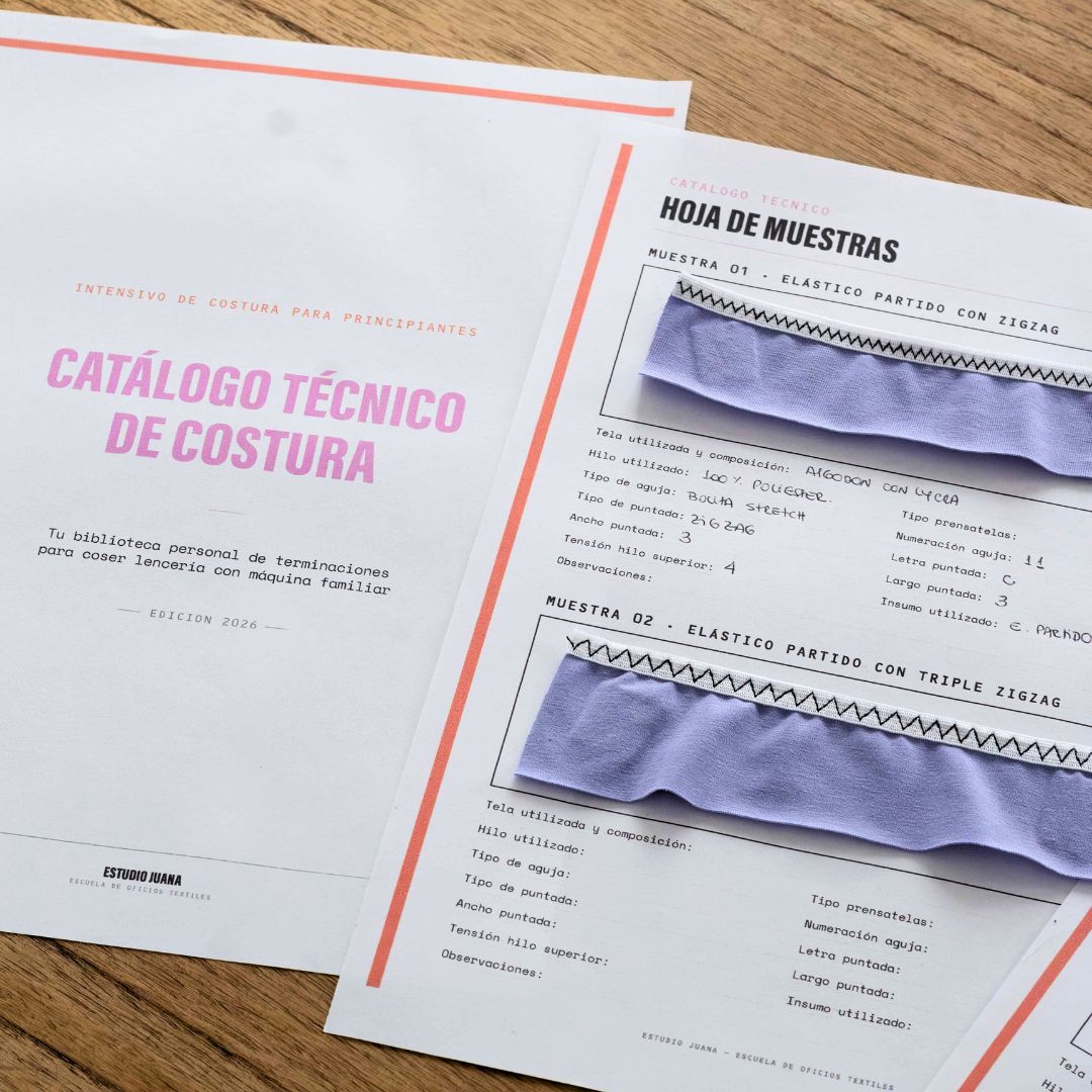 Más el Laboratorio de costura en donde practicamos sobre muestras de tela: terminaciones, aplicación de elásticos, diferentes puntadas. Un espacio para experimentar. Vamos a armar un catálogo con todo lo aprendido, a donde vas a poder recurrir cuando tengas dudas.